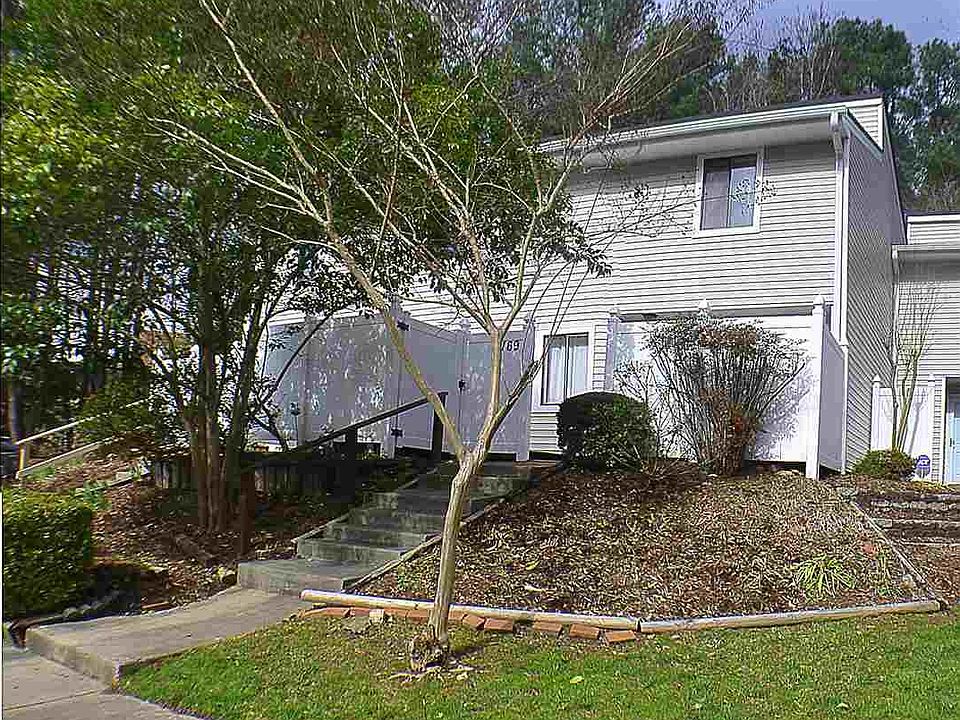 Back n Market!! 2 story 3 bedrooms 2.5 bath condo with courtyard & patio, next to woods for privacy. Complete with spacious living room, fireplace, separate dining rm, and a large master w/walk in closet and private bath. Convenient location where you can walk to shopping, restaurants, bus route, and greenway trail. Just off Six Forks Rd with easy access to I-440/540 and midtown. Sold "as is"! TLC and repairs needed but great investment potential.
