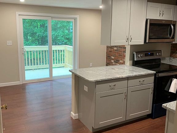 NEWLY RENOVATED sunny & spacious 2 BEDROOM / 1 BATH CONDO! Large living room features a fireplace adjacent to an eat-in kitchen with GRANITE countertops and a dining room. Glass sliders open to a NEW DECK that steps down a private back yard. All NEW laminate flooring and all freshly painted throughout. Laundry in building. Clubhouse access with swimming pool and basketball court. Close to major roadways, area amenities and Commuter Rail! NO PETS / NO SMOKING. Available for 8/1 occupancy. $2450/month. 1 year lease. First and Last required at signing of Lease. Rent includes water. No pets. No smoking. Require application by all applicants over 18.