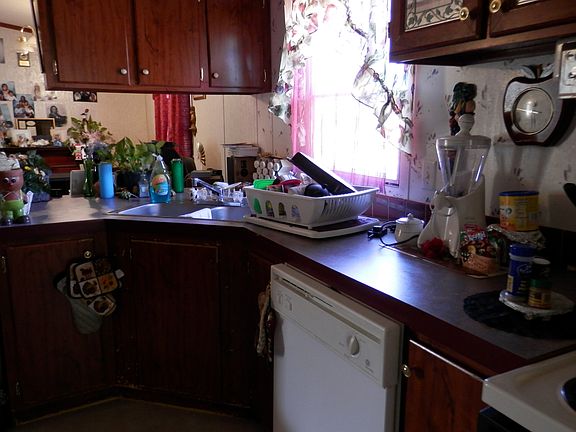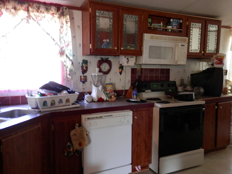 Over-sized two car garage with overhead additional storage. New roof 2012. 5 Acres, level, two cleared and 3 acres wooded. Private, secluded area. Home is on a permanent foundation. Road maintenance agreement. Heat works but cooling does not. Kitchen sink with island. Large master bedroom. Movable fireplace will not stay. Exterior play house, trampoline, dog lot, and chairs will not convey with property. Property extends beyond tree line in the back. Cleared on the sides. Additional acreage available.