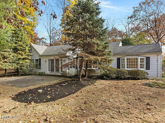 Your own private oasis in prime central Greenwich location! Perfect opportunity to enjoy as is or build your dream home. This charming and sunlit ranch sits on a one-acre property, and was completely renovated and expanded in 2003. It includes a very large primary suite with tray ceiling, full bath and double closets, oversized living/dining area with fireplace, eat in kitchen, family room with bay window and den with French doors. Great flow, and with the large bluestone patio, perfect for entertaining. Also includes one car garage, pull down attic and generator. Beautiful millwork throughout. Close to everything - Greenwich Ave, restaurants, schools - yet so very private!