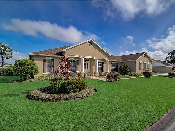 Auburndale Pool Home! This premium property adds a splash of luxury to a beautiful & charming community. The floor plan includes 4 bedrooms (triple-split), 3 full baths, formal living & dining rooms, an open family room w/ built-in entertainment center, gourmet kitchen w/ breakfast bar & island, dinette, interior utility/laundry room, and a side loading oversized 2.5-car garage. Recessed lighting, regal columns, and tile, wood & wood laminate flooring all add warmth and elegance to this inviting home. The upgraded kitchen has granite counter tops, maple cabinetry, walk-in pantry & kitchen appliance package including builtin oven and microwave. The primary bedroom suite has trey ceilings, oversized walk-in closet, private exit & an ensuite bath w/ jetta stone counter tops, garden tub, walk-in seated shower & private water closet. Multiple French-door exits lead out to the covered lanai, overlooking a sparkling solar-heated pool & propane overflow spa, all screen-enclosed for sun-soaked afternoons and relaxing night swims. A paver patio extends further out creating the perfect space for dancing under the stars and a fenced side yard with storage shed great for that project work. The recent updates include 2018: roof, 2019: A/C & storage shed. Old Nichols offers boat ramp access to the 738-acre Lake Arietta, and the neighborhood is located just 5 minutes from I-4, right between Tampa and Orlando. Peaceful rural living meets suburban conveniences in this well-loved town. The best of both worlds. Leave the chaos behind and come see this property, today!