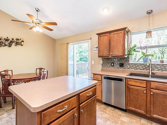 - Kitchen Features: Wood Cabinets, Ceramic Tile, Island, Pantry, Eat-In, Counter Bar, Walkout
