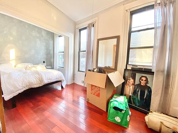 Welcome home to this gorgeous one-bedroom in Fort Greene. This unit features a spacious living room and eat-in kitchen layout, hardwood floors throughout, exposed brick wall with a decorative fireplace, massive king size fitting bedroom with ample closet space. The kitchen comes with full-size appliances. The bathroom has traditional tiles and separate sink space, plus great storage space. The building is conveniently located right next to a laundry facility, only block away from Fort Greene and Commodore Barry Parks, and near great restaurants, shops, schools and parking.
