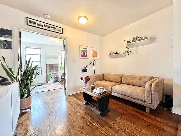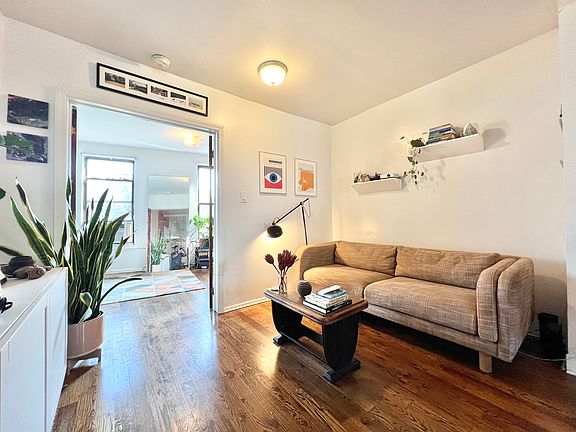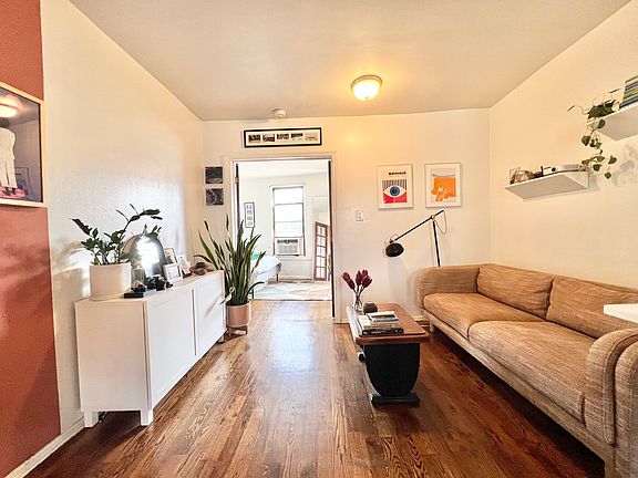 Welcome home to this exquisite one bedroom in Fort Greene. This beautifully lit, serene unit offers a perfect blend of comfort and style. The bedroom is spacious, with large windows that flood the room with natural light, creating a bright and airy atmosphere. The minimalist decor is complemented by modern touches such as a sleek full-length mirror, a large green-knit blanket draped over the bed, and vibrant indoor plants adding a touch of nature. The living area, with its warm wooden floors and cozy couch, provides a welcoming space to relax, while the subtle decor and tasteful art on the walls create an inviting ambiance. The open layout seamlessly connects the living room to the bedroom, making the space feel expansive yet cozy. The building is ideally located just a block away from both Fort Greene and Commodore Barry Parks, offering plenty of green space for outdoor activities. It's situated in a vibrant neighborhood, surrounded by great restaurants, trendy shops, and essential amenities like schools and parking. The convenient location provides easy access to all that the area has to offer, making it an ideal place to call home.
