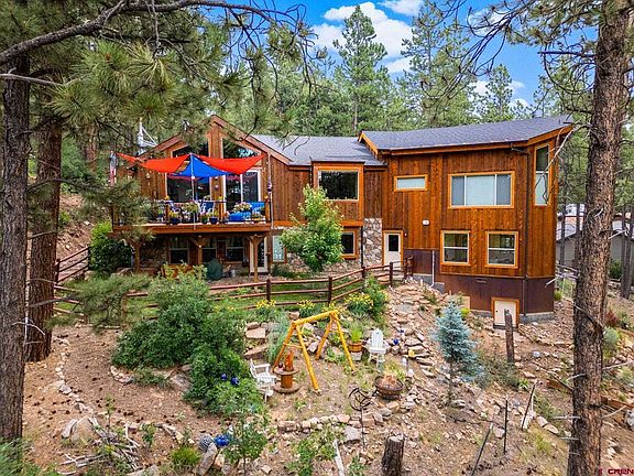 Nestled amidst the tall trees of picturesque Forest Lakes in Bayfield, Colorado, this exquisite four-bedroom, three-and-a-half-bathroom home offers a serene retreat on 1.376 acres of natural beauty. Boasting 2,731 square feet of thoughtfully designed living space, this residence perfectly blends comfort and luxury. As you enter, you'll be captivated by the stunning views that greet you from every angle, with large windows allowing an abundance of natural light to flood the open-concept living areas. The spacious living room, complete with a cozy wood fireplace and Aristokraft maple floors, seamlessly flows into the expansive kitchen, featuring beautiful appliances and ample cabinetry. The primary suite is a true sanctuary, offering a private oasis with a luxurious en-suite bathroom and a walk-in closet. The lake views from this primary are a must-see. Three additional bedrooms, one of which also is an ensuite, provide plenty of space for family and guests, while the three-and-a-half bathrooms are beautifully appointed. Step outside to discover your own private paradise. The expansive deck is perfect for entertaining or simply enjoying the tranquil surroundings, with views that stretch across the landscape to the lake. The lush, wooded lot ensures complete privacy, making this home an idyllic retreat from the hustle and bustle of everyday life. Located in the charming community of Bayfield, this home offers the best of both worlds – a peaceful, secluded setting with easy access to local amenities and outdoor recreational activities. Don't miss the opportunity to own this stunning property, where every day feels like a getaway.