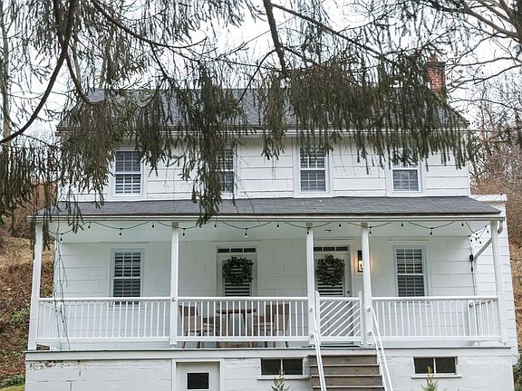 This 1800 farm house has been tastefully renovated and is ready for a new owner to experience living beside a stream and sitting on the large front porch enjoying nature. This home has a kitchen with higher ceilings that include sky lights . A granite countertop and Stainless Steel Appliances. A half bathroom on the first floor and recess lighting. 4 total bedrooms and 1 bathroom. The 3rd floor bedroom has recess lighting and skylights. Several outbuildings and a barn that needs some TLC, but is a perfect shop or storage space. Parking in front of house is an option, but a driveway that parks 2 cars is available across the shared bridge.