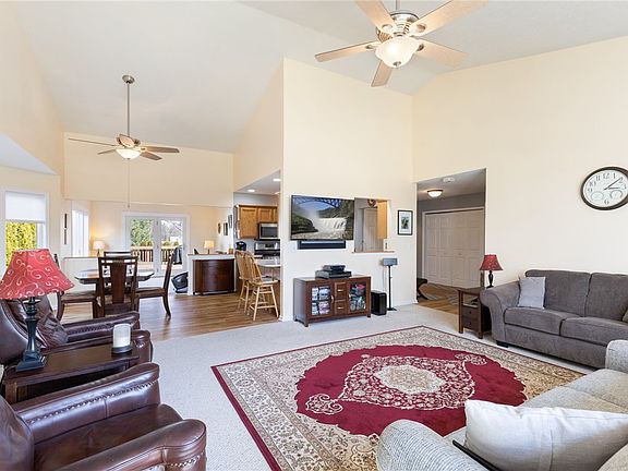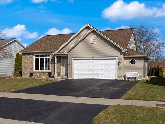WOW! Look at the gorgeous two bedroom, two bath home! Who loves to entertain, but loves the convenience of first floor living even more?! This stunning ranch, in the very desirable Northridge Crossing Community neighborhood has had over $100,000 in updates and renovations, including; New Soft-Lite Imperial windows, Marvin doors, Berber carpeting, first floor laundry, beautiful master bath w/no-step shower, large deck, expanded garage with a huge bump out for storage. The kitchen upgrades feature stunning Corian Quartz countertops, oak cabinetry, and wood (LTV) flooring. The builder expanded this home from the original plans, to a spacious 1524 sqft, (per bank appraisal measurement) and you can feel the benefit throughout the home. The airy, open floor plan, feels even larger with the cathedral ceilings. The extra square footage also helped to create a cozy family room/sitting area, with access through french doors, to the spacious 16 x 19 deck, with retractable awning. Outside is a wonderfully maintained and landscaped, private yard, in a walkable neighborhood. Delayed negotiations begin on Monday 3/18 at 10am, so don't wait to tour 169 Pollet Place!