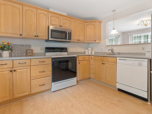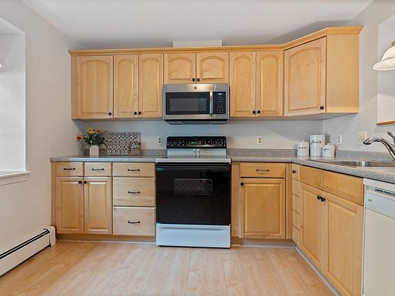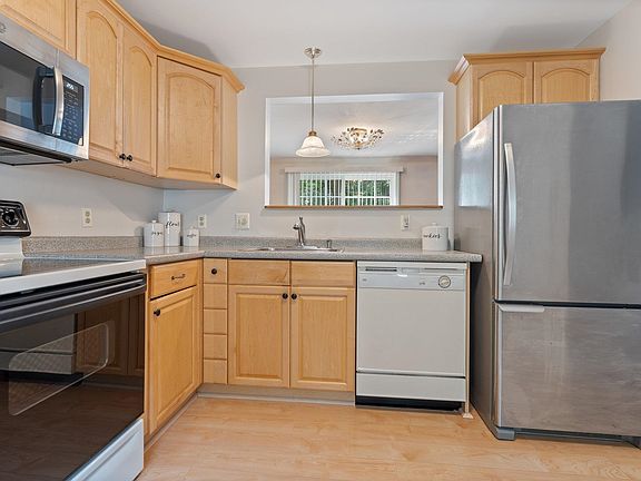 Experience the highly desired Cranmore Ridge in this charming END UNIT, 2-bedroom, 1.5-bath townhouse. The spacious kitchen accommodates a small table or an island for extra counter space, with a small pantry providing ample room for all your kitchen essentials. The open-concept living room to dining area is enhanced by a slider which will lead you to a back deck, overlooking a serene wooded area. Upstairs, you’ll find two generously sized bedrooms with large closets and the full bathroom. The primary suite has gleaming hardwood flooring, a walk-in closet which leads to the full bathroom. The second floor laundry is located in the second floor hallway and provides convenience. This unit also features a one-car garage with storage above and an oversized outdoor storage closet by your front door. Join this vibrant community that includes a community building with gym, rec room, library, sauna and in-ground pool. The grounds include tennis courts, dog park, and patio area with BBQ grill. This is an ideal location for outdoor and walking enthusiasts and is minutes from local shopping and restaurants. ASSOCIATION IS NOT FHA APPROVED. Agents, please refer to non-public remarks for financing options.