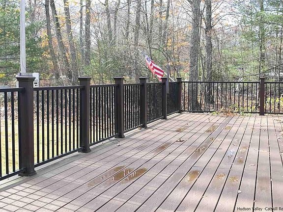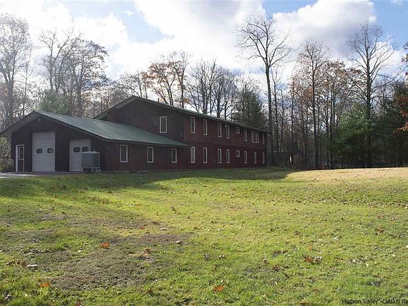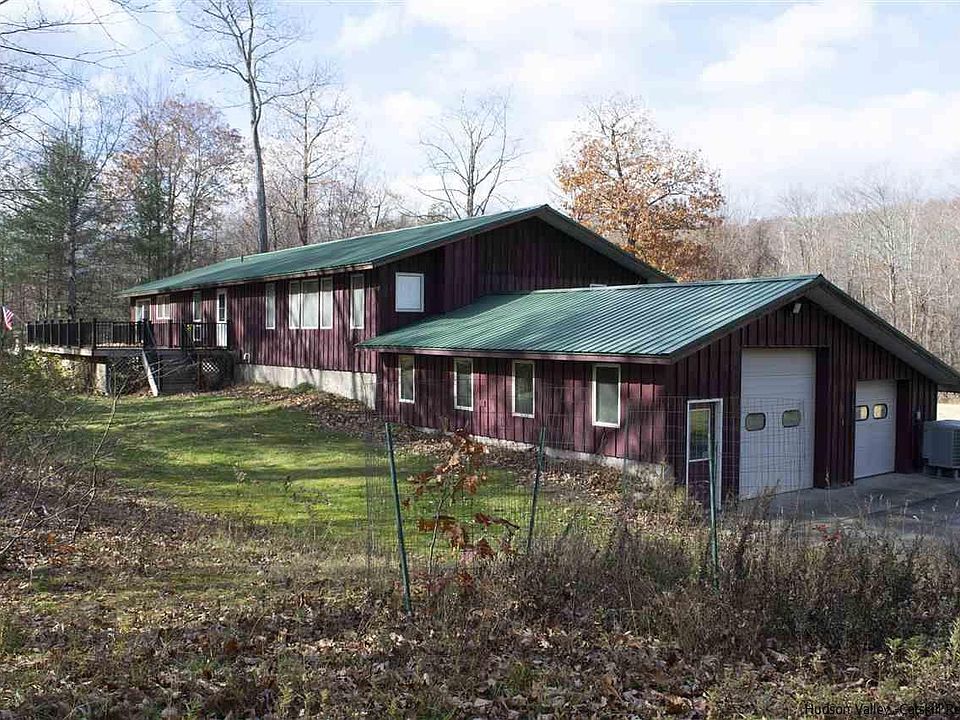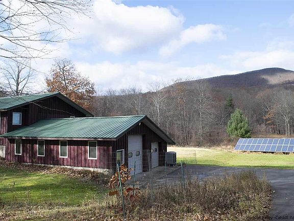 Ever dream of owning a totally unique home situated on 25 Acres with 2 ponds, 1 fed by the Butternut Creek, and the ability to be off grid and free of any dependency on outside energy sources? Here is that unique opportunity and only 2 hours from NYC. Bordered by hundreds of Acres of State Lands, this 2,652 square foot home, with an attached massive garage, is custom constructed to code with locally harvested native Catskill lumber. Featuring a huge eat in country kitchen with a full wall of pantry space and counter and cabinet space galore. The kitchen sliding glass door opens onto the deck, perfect for outdoor dining. The interior walls, doors, and cabinetry are of warm native yellow birch, oak, and cherry wood. Each board has been meticulously selected and installed to accentuate its grain and coloration characteristics. The exterior wood siding is installed over doubled 2x4 framing and features R50 insulation and the super high ceiling insulation is R75 preventing any heat loss issues. Ultimate comfort is provided by the heat pump and solar-powered hot air system; hot water is provided by a heat pump heater. This well insulated home generates more electric than it needs: 101% of its electric is powered by the 38-panel solar panel installation. The home is also equipped with an automatic air exchanger and an emergency full-house L.P. generator. The top-of-the-line Pella casement Windows have integral, as well as separate, insulated adjustable blinds. The massive, open floor plan of the lower level, also furnished with bathroom plumbing and top of the line windows, provides for great opportunity to incorporate your specific desires; be it office space, exercise rooms, additional bedrooms, and more. More features include: very high internet speed at 230Mps download/11Mps upload, a full-featured house alarm system, driveway entry alert, outside dusk to dawn lamplight on electric service pole, all optionally controlled, and plenty of parking area on the spacious blacktopped driveway. This unique private country property is located in the low property tax Town of Olive and is zoned to allow for additional dwelling units if desired. It is bordered by forever-wild state lands. The 2 ponds on the property have bass and yellow perch; the 1st pond is spring fed and the larger pond is fed by the Butternut Creek that runs through the property.