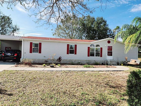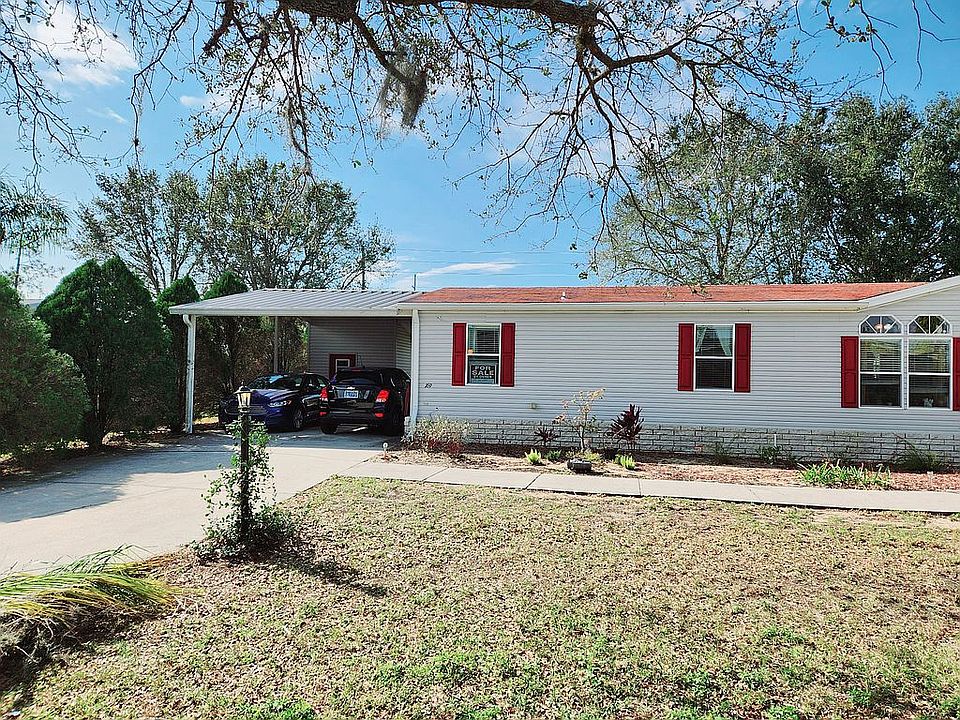 Bright and open floor plan ready to welcome you home! This 3 bedroom, 2 bath home features a split floor plan - large kitchen with ample cabinet space, breakfast bar, dining area and large living room. Bonus area is perfect for home office or den. Master bedroom possesses a large bathroom with over-sized soaking tub, double vanity and large shower. A large walk-in closet provides generous storage. Newly rescreened lanai adds 4-season enjoyment. Large laundry room with storage. Double carport with large driveway. Utility room with shelving. New roof (installation scheduled). Close to shopping, highways, theme parks, located in all age family community.