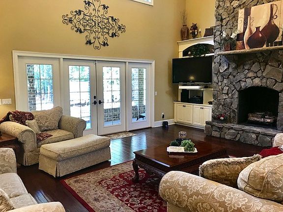 This beautiful custom home features a grand entry with beautiful double front doors, and 20 ft ceilings in the foyer and great room. Cozy up by the wood burning, stone fireplace or enjoy a large kitchen with high end appliances including an ice maker! The bottom floor also features a large master suite with separate tub and walk in shower with a huge closet. On the other side of the kitchen is a guest bedroom and bathroom. Upstairs houses 2 guest rooms with private bathrooms and an additional bedroom that is currently used for gaming. A walk in attic and work out room complete the upstairs space. The home also has beautiful landscaping and a lovely back porch and patio as well as a two car garage on a spacious 2.5 acre lot. You simply must see it for yourself! Call Sara to schedule an appointment today!