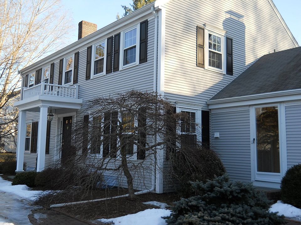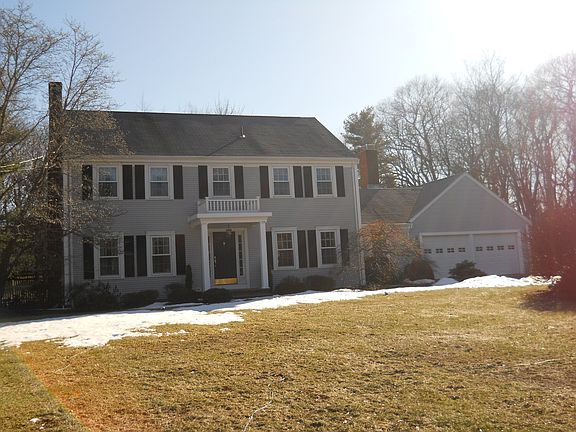 Lovely straight front colonial with brick porches and walkways. The inside has nine rooms, all (except the sunroom) with hardwood floors. Downstairs has five rooms – including a living room, family room, kitchen, formal dining room, half bath and a four season sunroom. There is a half bath downstairs as well. There are four bedrooms upstairs. The master bedroom has an en suite bath. The other upstairs full bath services the remaining three bedrooms. There are two working fireplaces – one in the living room and one in the family room. The kitchen has been updated with granite countertops and stainless steel appliances. The basement has an additional 1,000 square feet of finished living space, including three separate rooms, plus storage. The outside has tens of thousands of dollars of professional landscaping, including mature trees, flowing shrubs, flowers and three landscaped islands in the front yard – all on a flat lot Step out the back sliding glass door to a large trex deck. The backyard has a heated in-ground gunite swimming pool with aggregate deck. The entire back yard is fenced in. Roof, gutter, windows, siding and all brick work have been updated within the last ten years. There is a 24’ x 20’ structure in the back yard with vinyl siding, aluminum gutters, asphalt shingles, four double pane window and screens, concrete foundation, running water and electricity. The potential for this structure include a pool house, a children’s play house, an office, an in-law apartment and/or guest house. This structure could also be used as a horse barn. There is access to riding trails and conservation land.