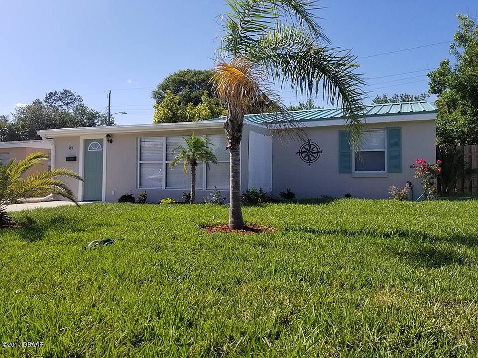 ORMOND BY THE SEA BEAUTY, TOTALLY RENOVATED BEACH HOUSE. STUNNING HIGH GRADE LAMINATE FLOORING THROUGHOUT, BRAND NEW KITCHEN BOASTS OF WHITE CABINETRY, GRANITE COUNTERS, DEEP (DBL) CHEF SINK, BEVELED SUBWAY TILE, STAINLESS STEEL DISHWASHER, MICROWAVE, RANGE AND REFRIGERATOR . BATHROOM COMPLETELY REMODELED WITH GLASS SHOWER ENCLOSURE, TILE, VANITY AND TOILET, 6 PANEL DOORS, CROWN MOLDING, AND BASEBOARDS THROUGHOUT. 2 INCH BLINDS, GORGEOUS INDOOR SUN-ROOM, LARGE DINING & LIVING ROOMS WITH PASS THROUGH EAT-AT GRANITE BAR. SCREENED PATIO FOR OUTDOOR DINING. HUGE (NEW PRIVACY FENCED) TROPICAL BACK YARD WITH A GIGANTIC POURED CONCRETE PATIO FOR OUTDOOR LIVING SPACE. IF THAT'S NOT ENOUGH, ENJOY YOUR NEW CUSTOM BUILT TIKI BAR. METAL ROOF AND GUTTERS! GREAT BEACH PARK AND RIVER ACCESS AT EACH END!
