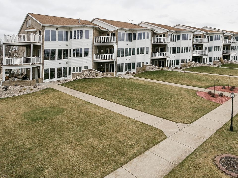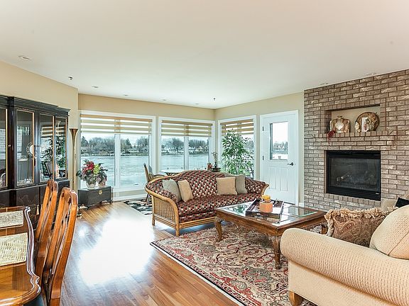 Premier Waterfront Condo! Year round panoramic views overlooking the Wolf River from this main floor end unit. Luxury living at its finest with open concept main area with custom cabinetry, solid surface counters, hardwood flooring, gas fireplace and private balcony. Impressive master suite with walk in closet and bath with double sinks, jet tub plus shower. Abundant storage with two garages and over sized lower level storage area. A must see.