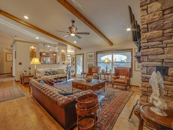 Pueblo West Rancher at its finest! 3 Bedroom 2 Bath all on one level. Spacious open layout with vaulted ceilings with beams, recessed lighting. Gourmet kitchen with granite countertops including an eat in area. Sprawling hardwood floors, formal dining area. Huge living area with 2 sided stone fireplace. Amazing Master bedroom, including 5 piece master bathroom. Claw foot tub, Walk in closet with tons of room. Lush landscaped backyard with covered patio area. (hot tub negotiable) Pond area, new wood fence and sprinkler system, gas line for grille, Shed with AC unit, outdoor speakers! Concrete slab great for Boat or RV parking. 3 Car Oversized garage with tons of cabinetry. This home is it! Must see! Come take a look today before this beauty is gone.