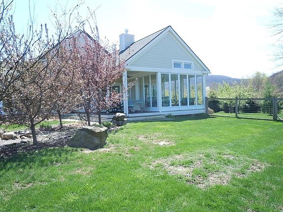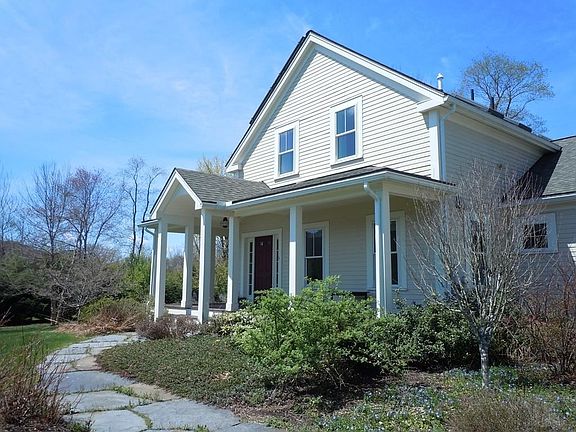 Wonderful, super energy efficient , sunny, custom Wright Builders home . Open floor plan with Brazilian cherry floors throughout soaring ceilings, dining area, living room fireplace leading to 3 season porch and deck. Custom kitchen with Aga stove, soap stone counters, walk in pantry with wine cooler. 1st floor master suite with dual sinks, tiled shower and separate tub, 2 large closets and sliders to deck and yard. The 2nd floor features 2 bedrooms, cherry floors. with large tiled bath and extra storage. The basement has 2 finished rooms with wet bar. Outside is a private retreat featuring a heated, self cleaning, saltwater Gunite pool and spa, and Goshen stone patio. The professionally designed landscape features mature fruit and ornamental trees. Owned solar panels, triple paned windows, and double thick walls make this home super energy efficient. Move in ready, just in time for summer.