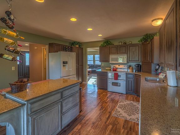 First time debut of this home to ever hit the market. One owner, well loved and it shows in so many ways! This 4 bedroom, 2.5, 3104 sq ft home offers a beautiful open vaulted family/dining room. Kitchen newly remodeled with granite countertops and laminate flooring. Living room offers propane fireplace and bay window seating. Daylight basement that leads out to lower patio is perfect for man cave, kids zone or workout area. Upper floor has 4 full bedrooms and large flex space area great for guest room, bonus room or more storage. Master suite has private deck overlooking the perfectly manicured fully landscaped yard. Large master suite with jetted soaking tub, double sinks and shower. Oversized laundry room leads out to double car attached garage with built in shelving. Enormous 4 bay custom shop can store all of your needs/trailers/RV's/boats and anything you can imagine. Nice nook office/flex room in between. All sitting on 2 fully landscaped acres on a cul-de-sac street.