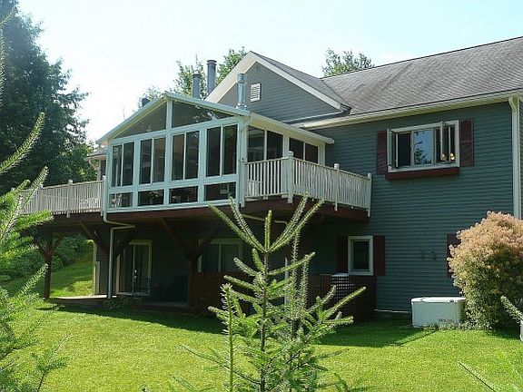Lovely family home in quiet neighborhood. Excellent condition with lots of extras. The main level has an open floor plan with a large, well laid-out kitchen, dining area for at least 10 and spacious living room with wood fireplace. Enjoy the view from the 3 season sun-room with gas-log stove. The Master Suite is a on the main level with sliders to the deck and also has a wood fireplace. 2 bedrooms and a bath plus family room and laundry are on the lower level. 2 car garage and 6 acres complete the picture. Close to skiing at Mt Mansfield and Smuggler's Notch