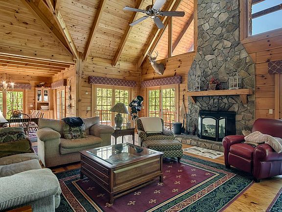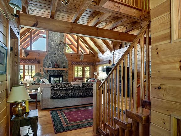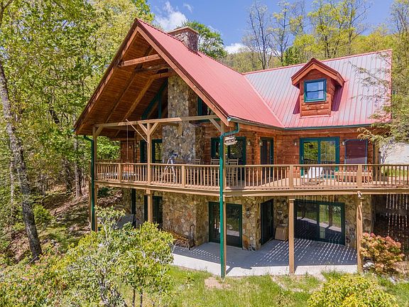 Major Price Improvement!! Consider VRBO, Unrestricted, sleeps 14+ Wonderful Mountain estate home beautiful mountain views. The property is more than 29 UNRESTRICTED acres. Features that include main home with three floors of living along with two separate garage/ barns /workshop one with fully finished apartment. Outside explore the trails and a spectacular multi-tiered deck system that leads to the spring fed creek the deck includes a pre fitted space for hot tub or spa. , Abundant parking for your lake boat and RV Guests. The main floor main bedroom suite accesses the porch, relax and take in the sounds of nature, Great stone fireplace in open floorplan living room. Detail craftsmanship shows itself throughout. Guest bedrooms and office loft upstairs and two guest rooms with guest bath including large entertaining living room space on the lower l property has it all - Privacy, opportunities for large family compound possible caretaker living all at high cool elevations 4100', views and close to Lake Glenville's public boat launch, beach and High Falls trail. Private but easy access to Cashiers, Highlands, Sylva, Franklin, NC. Starlink tested for internet and phone. nearby.