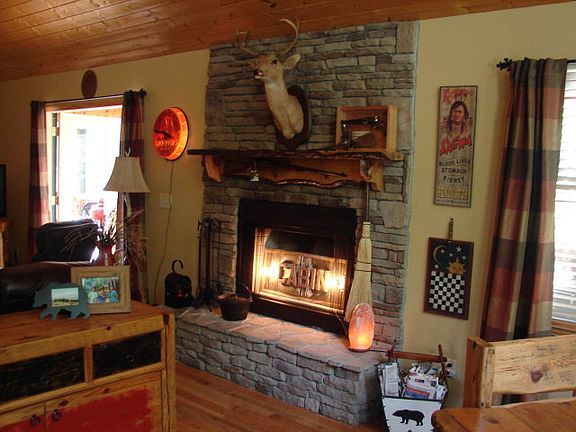 HIDDEN IN THE WOODS - Paved access to this great location. Privacy with neighbors nearby. Living space on main level with partial finished basement. Featuring log siding, covered and open decks, screened-in porch, quality work into fire pit, hardwood flooring, high ceilings, wood burning fireplace, C/H/A, appliances. Many more extras on this FURNISHED 2 B/R 2 B/A home.