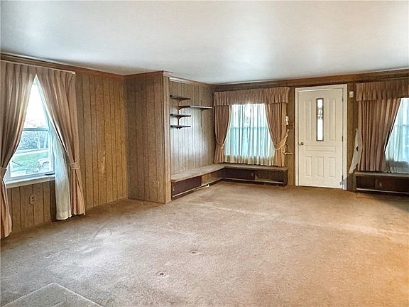 Charming 2 BR, 2Bath in Central Valley School District! Situated on nearly 1 full acre LEVEL lot this little gem is a great starter, downsizer or investment. Solid wood paneling decks the expanded living room including built-in wall-benches for extra storage. Large kitchen combo’s conveniently with dining space where both flow into an additional 3 season room with 180* views of the skyline- or enjoy the outdoors right from the attached deck. Full, dry basement provides ample storage, laundry and FULL bath! Favorably located seconds from I-376, and shopping precincts. It's all Merry!