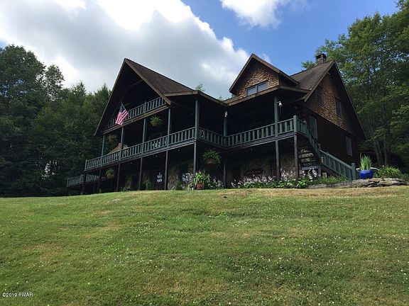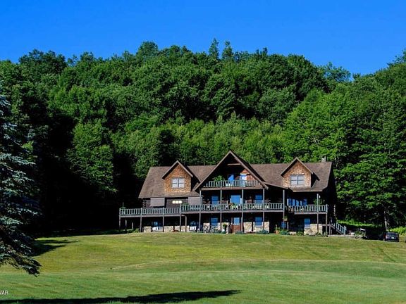 An exquisite 10 bedroom, 10 bath Log Home currently run as elegant Bed and Breakfast.....but this would be the perfect home & retreat for a large family in all seasons! Many recent upgrades including new boiler and decking. With extraordinary views and rustic charm, this 3-story log home is in immaculate condition and a great destination for relaxation and seasonal adventures like fishing, hiking, swimming, skiing, and snowmobiling. Enjoy the views of the Shehawken Creek Valley from one of the fabulous triple deck porches. Border Rails-Trails and close to Elk Mountain Ski Resort and the Delaware River with easy access to Route 17 in Hancock, NY.