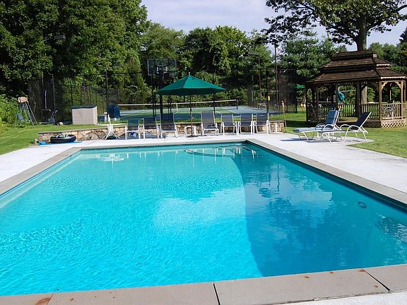 for the active family. Lighted Tennis/Basketball court, 20x40 I/G Pool with hydraulic safety cover, 2 Level Private Beautiful Landscaped acres. Sun-Filled 5 Bedroom Spectacular house with Guest Suite. Fantastic Kitchen/Family Room overlooks Panoramic View of Private rear yard. Finished lower level complete with Gym Room, Steam Shower and Antique Bar Pub area. Exceptional 7,000 sqft house and property. Virtual Tour on www.realtor.com . $1,989,000