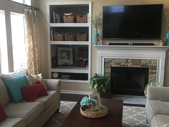 Captivating house that truly feels like a home. This home exhibits perfection and pride in ownership. Enter to an open floor plan that boast, gleaming hardwood floors. This floorplan is ideal for entertaining. It is open, airy and full of natural sunlight. The kitchen is open, easy functional and has tons of storage. The backsplash is new and adds lovely character. The bedrooms are large & all have large closets, especially the master! Nestle in on the cozy screened porch to enjoy a peaceful, private backyard. Backyard is fenced in & backs up to a pond on the corner. Beyond the fence is wooded that adds tons of privacy. There is extra storage above the garage, accessible by pull down stairs. Popular Grand Oaks neighborhood with sidewalks, play park& community pool.
