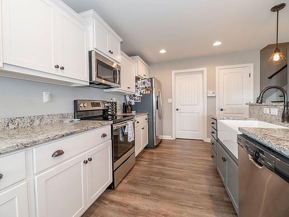 Gorgeous 3 year old craftsman style home in the sought after community of Sutton Place. This meticulously maintained 4 bedroom, 3 full bathroom home is ready for its new owner. The first floor primary suite features a gorgeous tile shower, double vanity and walk in closet. The home has luxury plank throughout the entire space. No carpet! A custom craftsman style fireplace is the focal point of the family room and easily seen from the incredible kitchen island. Custom Gourmet kitchen showcases white shaker cabinets with contrasting island with farmhouse sink, stainless appliances and custom trim work. Upstairs includes two large bedrooms with a phenomenal shared bathroom. Covered front and rear porches allow for ample outside entertaining space with a large yard. Extended 2 car garage is perfect for allowing for storage and your vehicles (current owners are able to store their boat!) Schedule your showing today!