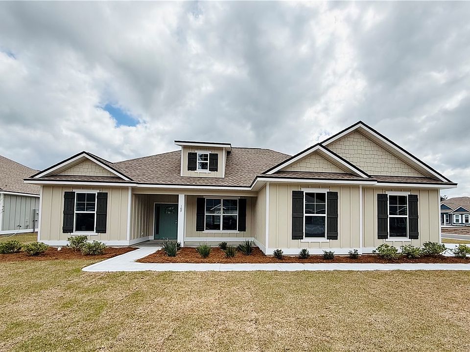 MOVE-IN READY! Experience quality craftsmanship from local builder Josselyn Homes in this new construction home in Lake Juniper. Lake Juniper delivers exceptional convenience — just 3 miles from local elementary, middle, and high schools, as well as Laurel Island Links and Chick-fil-A. Plus, with I-95 only minutes away, you’ll enjoy quick, effortless access to Brunswick, Jacksonville, and Kings Bay. 3 bedroom, 2 bath with office/flex space & side load 2 car garage on a large corner lot. This home features an open concept living space with island kitchen and a split floor plan. Upgrades throughout with 9ft ceilings, granite countertops, stainless appliances, crown molding, EVP flooring in the main living areas, kitchen, dining & laundry, carpet in bedrooms, double vanity in the master bath with garden tub, separate tile shower and walk-in closet. Exterior features Board & Batten siding. ** Builder holds a real estate license and related to listing agent/broker.**Interior Pictures form a previously Constructed Property, finishes will vary.**