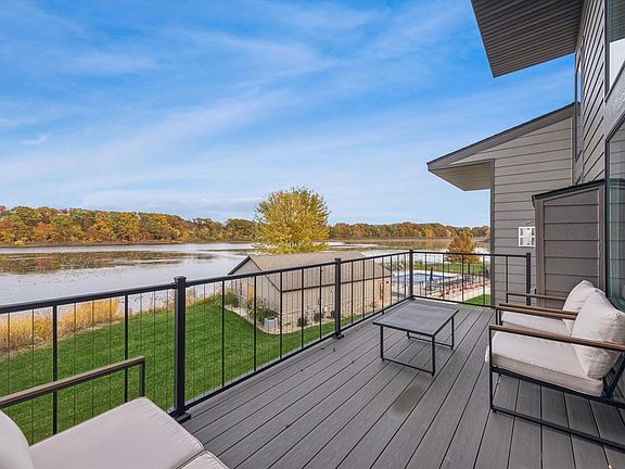 LAKE FRONT PEACE & PRIVACY meets a modern architectural style featuring sleek designs and sharp rooflines that blend with a serene 100-acre Fish Trap Lake. The setup creates a seamless connection between the cozy indoor area and the tranquil outdoor scenery, enhancing the ambiance of relaxation. These 3 or 4 bed, 2 1/2 bath townhomes are something right out of the pages of a magazine. Watch the seasons change through the expansive floor to ceiling windows that maximize natural light and offer stunning views and connect to your own large private deck. The cozy open-concept design space features soaring ceilings, a modern, professionally designed kitchen with quartz tops, stainless-steel appliances, and a sleek 13-foot island with bar seating. The contemporary finishes add a stylish ambiance. The home is complete with dream finishes such as a posh master suite with double vanity, tile shower, soaking tub, dressing room with custom closet system, spacious laundry room/ butler's pantry/ mud room area right off of the roomy 2 car garage and a lower level with a guest suite, family room that's perfect for game day entertaining and walks right out to the lake, association pool and fitness center. The proximity to shopping, dining, walking trails, casinos, New Buffalo, Michigan City, South Bend, I-94 and I-80 make this a magical location. East Shore Preserve, your LAKE FRONT dream home awaits!