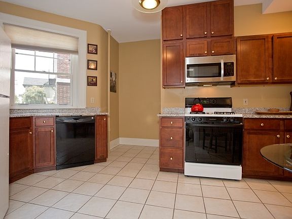 Beautiful charm of yesteryear makes this 2BR unit feel like home! Includes inviting center hall foyer, hardwood floors, original woodworking, large butler's pantry with built-ins and counter space, granite eat-in kitchen fully applianced, formal dining room with built-in hutch, corner living room with decorative fireplace, high ceilings, newly painted, finished basement w/ family room and additional full bath with washer/dryer. TWO parking spaces (one directly in front of unit). Convenient access to Mass Pike and major routes.