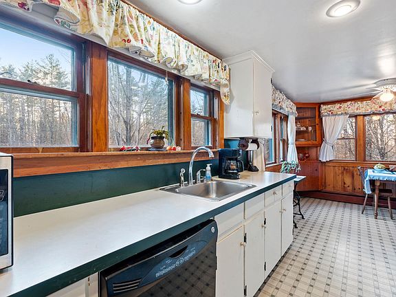 Nestled in a serene and quiet area, this delightful 2-bedroom, 1-bath home offers both warmth and potential. The property boasts a large, level yard, perfect for outdoor activities and gardening. Surrounded by expansive forests that provide excellent privacy, the yard features a variety of fruiting plants, including peach, quince, and grapes, and vibrant perennials, once making it a staple on the Bradford Annual Garden Tour. Inside, natural light fills the space, highlighting the cozy wood-burning fireplace that adds character and comfort. Designed for the ease and convenience of first-floor living, this home provides a solid foundation for your personal touches and renovations. The inviting 3-season porch opens to a deck, creating a wonderful space for relaxation or entertaining. Additional features include a full-house generator for peace of mind, an outdoor shed, and a single-car garage. Directly across the street is the Pearl Town Forest, a 37-acre public preserve with a walking trail through maturing woods. Bradford residents also enjoy swimming and boating at nearby Lake Massasecum. Close to snowmobile trails and just a short drive to Mount Sunapee, this home is an ideal spot for outdoor recreation. With easy access to I-89 and I-93, it’s an easy commute to Concord, Manchester, Boston, and the Lebanon/Hanover area. Whether you're seeking a tranquil getaway or a place to create your dream home, this property provides the perfect canvas to make it your own.
