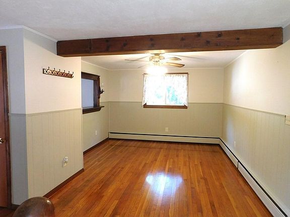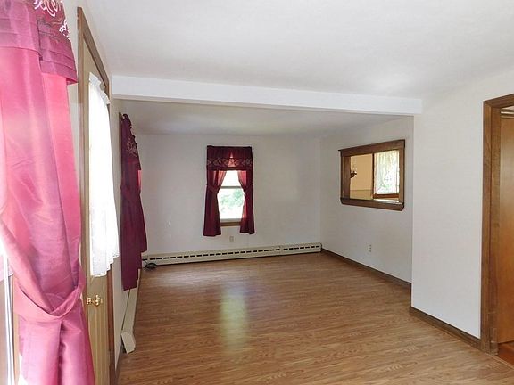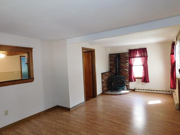 This home offers an updated eat in kitchen with Bertch cabinets. Living room with wood stove, dining room and full bath on first floor, second floor offers 2 bedrooms with third room (den/office), 18 X 8 deck off of kitchen and nice 3 season front porch, Buderus boiler, newer oil tank, circuit breaker main panel that is generator ready. Oversized garage/workshop and shed.