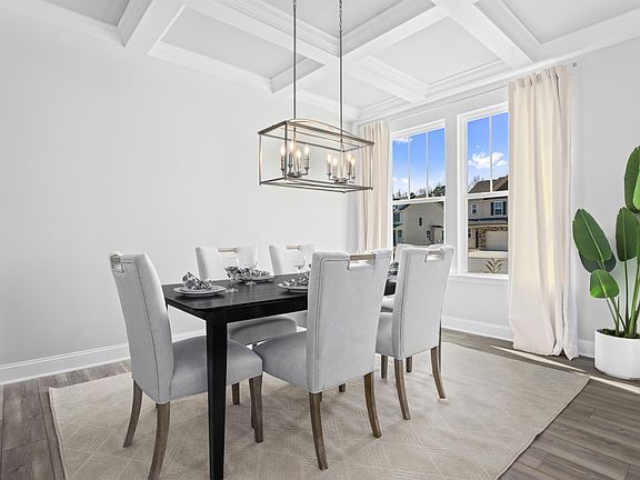 Beautiful and spacious home with 1st floor main bedroom and bath, formal dining room with coffered ceiling, 12' high ceilings in the living room/kitchen area. Main floor laundry room covered front and back porch, private homesite, what's not to love about this wonderful brand-new Summit floor plan home. Come live in the heart of Flowers Plantation, right across from the upcoming Waterfront district! Photos are of a model.
