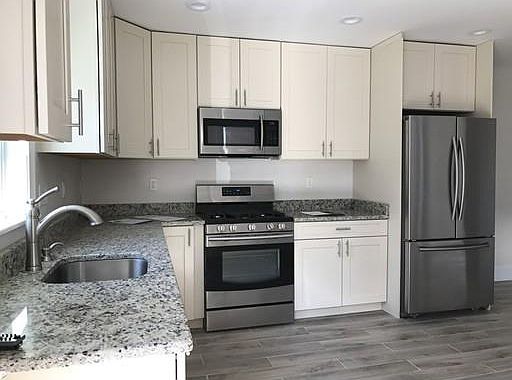 Gut renovation just completed on this 1st floor unit in an owner occupied 2 family home. Large modern kitchen with all brand new energy star SS appliances, granite counter tops, gas stove and 2 door large refrigerator. Gleaming hardwood floors throughout, recessed lighting. Large rooms, good closet space, lots of sunlight. One of the bedrooms is located on the 2 nd level, 3 bedrooms and all other rooms are on the 1 st floor. Gas heat, new high energy system, forced hot air. IN UNIT LAUNDRY, washer dryer is provided. Just bring your clothes! Close to major routes ( Rt 16, Rt 1, and Rt 1A) and within walking distance to Beachmont T station ( blue line). Revere Beach is a few minutes drive! Boston and Logan are minutes away. Available April 1st or sooner. Showings this SAT 3-4 PM. Come by.