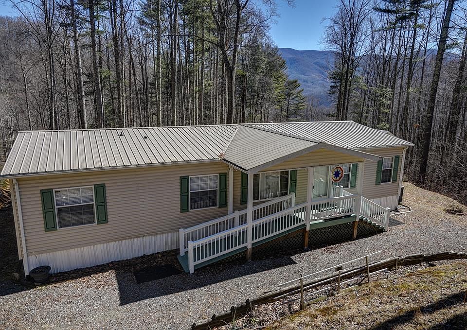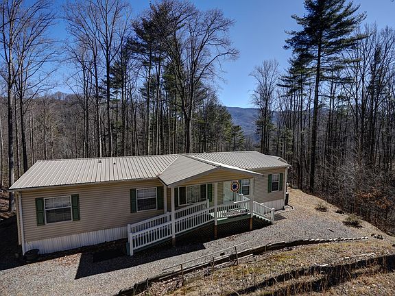 Less than a mile off Hwy 74, 15 minutes to Sylva or Waynesville, paved road to driveway, this well cared for 2007 manufactured home is move in ready. New metal roof in 2016. Well built ramp to covered porch entrance with ample parking, unloading is quick and easy. Entering the home there is a room currently used for dining that opens into large living room and kitchen, separated by spacious breakfast bar. Kitchen has a surplus of counter space and lots of cabinetry with laundry adjacent. This 3/2 home is a split bedroom plan. The Master has a walk-in closet and en suite bath with glass block window over garden tub, walk in shower, double vanity, and linen closet. The 2nd bath is located between 2nd and 3rd bedroom with easy access from living room. Wait until you see the awesome covered and fully screened porch that runs the length of the home! Just under 500 sq ft of additional space with lights and outlets, entertain family and friends, or just admire the long range view in this peaceful small neighborhood with no thru traffic. Open deck and wired 8 x 14 storage building adjacent to the covered porch. Underground power another plus for this lovely home.