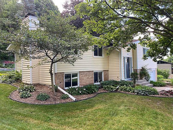Move-in-ready,updated, and maintained home on quiet cul-de-sac with great privacy. This home is full of refinished hardwood floors, laminate, and tile in basement. Recently remodeled kitchen (2018) has granite countertops with glass and aluminum back splash, custom cabinets, and Bosch appliances: including induction range with convection oven and microwave. Clever main floor laundry area include 2018 LG high efficiency large capacity washer and dryer. New AC also in 2018. New color-matched TuffShed in 2018 for additional storage and utility. Custom blinds throughout. Home office/Bonus room. Newer vinyl siding and windows leave little to do with this house but move in. Great location near Century High School and in walking distance to Jefferson Elementary and Kellogg Middle Schools. This has been our home for the past 18 years and we have poured lots of time, energy and investment into making it a special place for us to raise our children. The neighborhood is peaceful with excellent neighbors. This is a rare find in Rochester. While being so close to downtown, Mayo Clinic, shopping, and restaurants, this property is still surprisingly private with mature trees and established landscaping and gardens with heirloom plants. The plentiful windows give this home a light airy feeling while allowing views of deer, birds, and flower gardens. The open style floor plan allows for entertaining friends and family with the ability to flow out onto the deck and patio area and enjoying a recreational bonfire in the fire pit. The spacious garages leave plenty of room for your vehicles and workshop. We have enjoyed many peaceful days and nights in the private park like backyard. PRE-QUALIFIED buyers please come take a look. Buyer’s agents welcome.