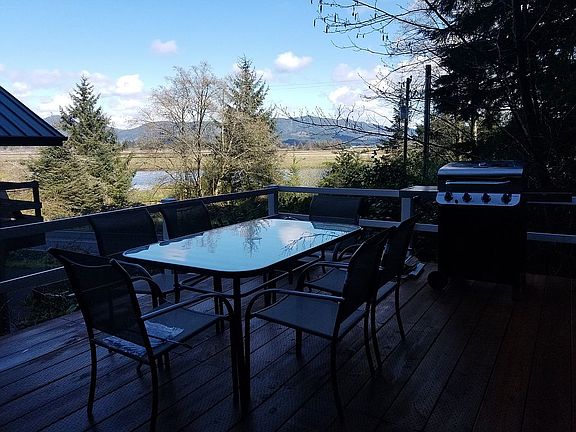 Large .93 acre Investment property, Primary living, Getaway property, or dual living-this property has separate basement/garage w/1 bedroom/remodeled bathroom & laundry room on main & overlooks Trask River backdrop setting upstairs w/family room brand new wood stove, 1 bedroom/1 bath, updated interior, flooring & appliances, w/bridgewalk to outside deck w/fire pit. New 15X30X17 RF Covered RV canopy & high carport RV Full hook-up (electric, water & dump), plenty of parking & creek running along property line. Current BNB seller has proven rental income. 5 miles from beach access.