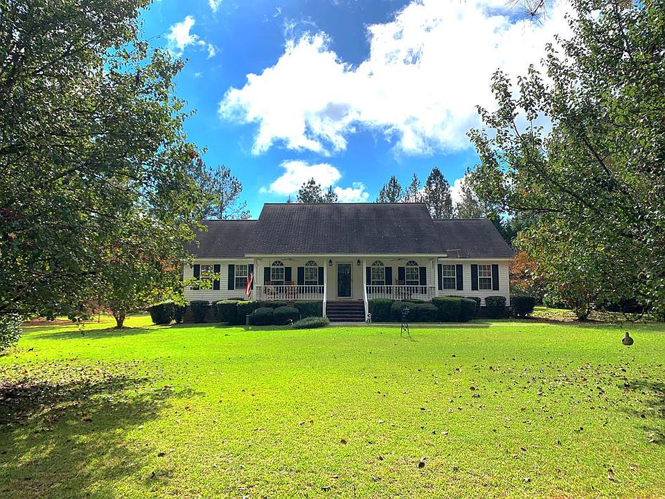 Farmhouse on nearly 12 ACRES. Beautiful, private setting. Adorable 3 BR, 2 Bath home, built in 2000, features a 17x15 living room with vaulted ceiling and gas fireplace. Formal dining room. Split bedroom plan with huge 15x20 master, en-suite bath with garden tub and walk-in closet. Large office off master makes a great flex space and could be used as second den, playroom or 4th BR. Rocking chair front porch and nice, grassy backyard with room to roam. Home is surrounded by mature hardwoods and pines and has a second driveway through the rear pine stand. This estate is perfect for anyone who seeks peace and seclusion but enjoys being just a few miles from the conveniences of town. Properties like this one don't come along often.