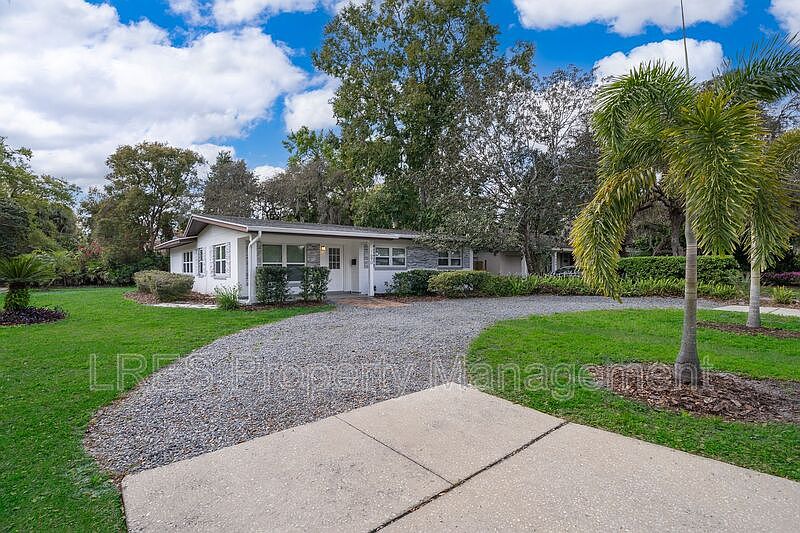 This captivating 4-bedroom, 2-bathroom home nestled in Winter Park embodies the area's renowned charm. Situated on a corner lot with dual driveways, including a grand circular drive, it offers both convenience and ample parking. Step inside and discover a haven of contemporary updates. The sparkling kitchen boasts stainless steel appliances, while the bathrooms showcase custom tilework and stylish lighting. Updated flooring flows throughout the entire home, creating a cohesive and inviting atmosphere. A washer and dryer are conveniently included, and a private entrance leads to an expansive deck - perfect for relaxing or entertaining. Beyond the home's impressive features lies the idyllic Winter Park lifestyle. Enjoy easy access to renowned shopping, dining, and cultural experiences. Rollins College, Winter Park YMCA, Lakemont Elementary School, popular Park Avenue restaurants and boutiques, Phelps Park, and Sprouts organic store are all within easy reach. This residence offers the perfect blend of comfort, convenience, and access to everything Winter Park has to offer.
