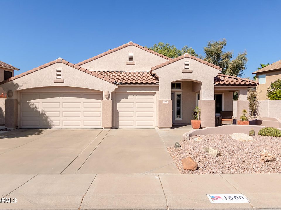 Welcome home to this 3 bed 3 bath 2136sqft Chandler home in sought after Ashley Park! Conveniently located near grocery stores, coffee shops, and restaurants. This turn-key home is equipped with dual master bedrooms each with private exit to the backyard, New HVAC & Roof in 2020/2021, vinyl plank flooring, neutral paint tone, granite counter tops, stainless steel appliances, vaulted ceilings, remodeled bathrooms, remodeled gas fireplace, laundry room cabinetry, 3 car garage with epoxy flooring & an overhead storage rack, low maintenance desert landscaping out front with a covered front patio. Backyard showcases a covered paver patio, artificial turf, walk ways, and a view fence to the greenbelt behind (no backyard neighbors!). See this home today before it is gone!