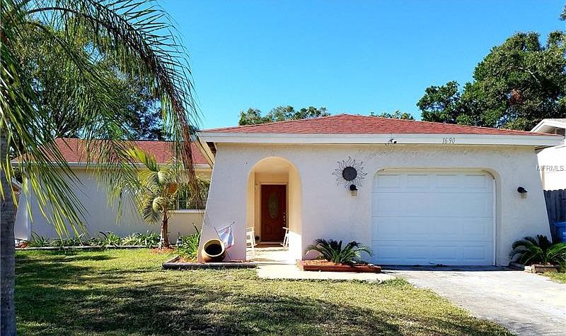 Great Palm Harbor Pool Home in Beacon Groves. Two bedrooms, two bathrooms, 1 car garage. Breakfast bar in the kitchen. Laminate floors throughout. Master bedroom features updated en-suite bath and walk in closet. New AC in 2017, newer water heater (2 years), new roof in 2011. No HOA!! *Room dimensions are approximate*