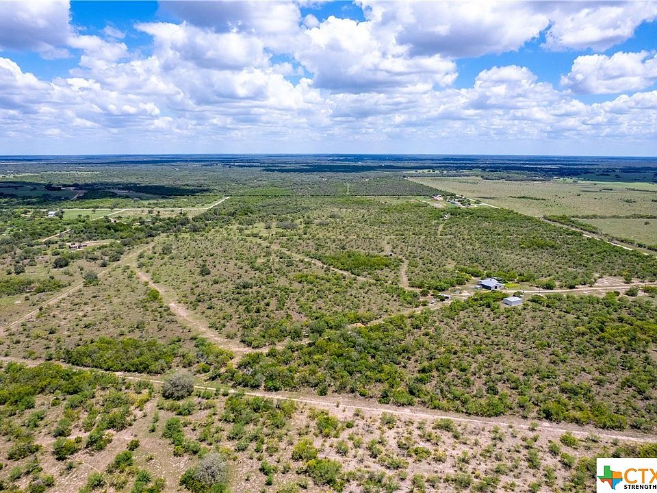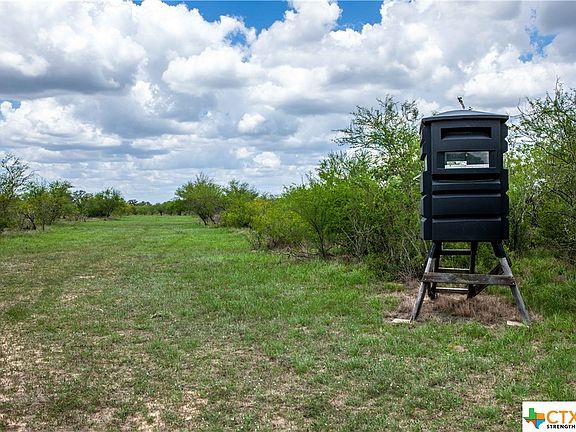 Just 5 miles northwest of Goliad rests this turn-key, pristinely kept ranch with black top frontage. Surrounded by natural elements, brush, and mature trees, this property is ag-exempt and fully equipped for hunting and wildlife. A flawless trail system has been put in place to provide easy navigation when hunting. The beautiful single-story home nestled into this natural property highlights rustic charm and provides enough space for any living situation or hosting guests. Gorgeous wood details are present throughout the common area as well as the 3 bedrooms, 3 baths, and private study which includes 1 of the 2 queen size Murphy beds. Outside, the 21 X 26 ft patio with sink is perfect for enjoying the evening breeze. The barn and garage provide ample storage for ranch toys. The shooting range, deer hanger, and chicken coop are added benefits to the land. Provided with a Generac generator and plyboard for hurricane season, recent landowners have thought of everything.