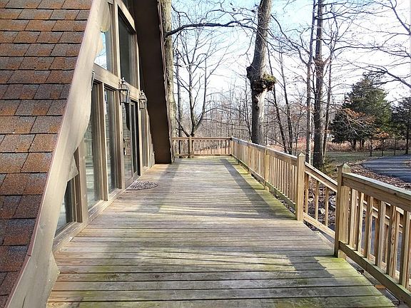 Escape to this unique A-Frame home surrounded by tranquil woods & rolling land. Sunlight soaks the main living area with vaulted & beamed ceilings creating an open & airy feel & a beautifully crafted stone fireplace enhancing the character. You'll find a spacious living/dining combo, workable kitchen with stainless appliances, lazy-susan cabinet & breakfast bar. A large loft with a cubby of built-in shelves & a finished basement rec room provides additional living space. 2 bedrooms with ample closet space & access to the rear deck & 1 bathroom with oversized tub/shower & a nearby hallway linen closet. Oversized garage plus lots of paved area for additional parking. Seclusion at its best! 1 PET ALLOWED WITH FEES & RESTRICTIONS (Must be Under 25 Pounds at Maturity) Want to take a look at this home? 1-year contract, renews month to month after first year.