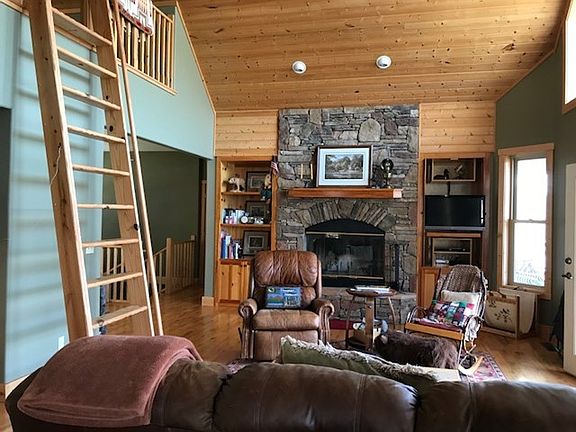 REDUCED-lakefront home with privacy on pristine Lake Nantahala. Home features open great room with wood burning fireplace and beautiful furnishings Master bedroom is on the main level and the large kitchen is fully equipped with high end appliances. There is a large pantry and separate laundry room off the kitchen. Downstairs is an additional recreation room with gas burning fireplace, 1 large bedroom with queen bed and bunks and additional bonus room for sleeping. There is also a loft area which could be an additional sleeping area or office. The home has covered decks on 3 levels with outdoor furniture and easy access to large dock. Lowest priced home in development