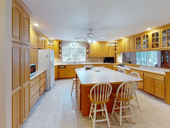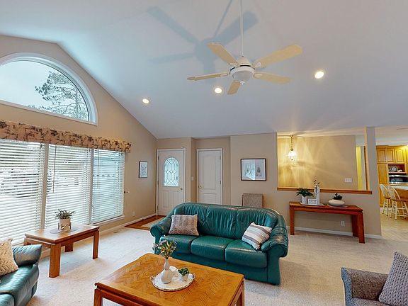 overlooking Whispering Lake. The 3-car garage with tons of storage above, main floor laundry, and expansive kitchen are sure to impress. The vaulted ceilings and open floor plan create a sense of space and light. Looking for more storage? The basement has a workshop/storage area, pool table/game room, and family room with windows that provide tons of natural light.. This peaceful setting is situated on a double lot with a circle driveway just a short distance from amenities and recreational activities offered by Michaywé including an on-site golf course with member discounts, indoor and outdoor