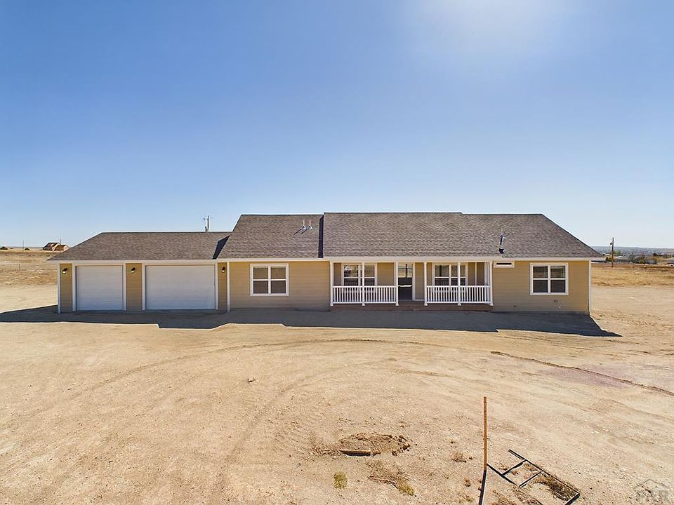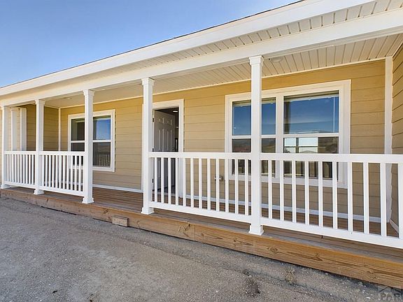 Welcome to this magnificent ranch-style modular home boasting a charming covered front porch. Situated on a private cul-de-sac adjoining the Walker Ranch, this property offers breathtaking views from its elevated position. To the north, you'll marvel at the majestic Pikes Peak, while to the southeast views down to the Steel Mill, and to the southwest, the stunning Spanish Peaks. Nestled on 1.38-acre lot, this fantastic home provides a sense of tranquility and comes move-in ready with the added assurance of a builder warranty. Step onto the covered front porch, and you'll enter a welcoming open floor plan that's perfect for hosting and entertaining guests. The kitchen of your dreams awaits, complete with a spacious island, breakfast bar, a sleek glass hood vent, a stylish backsplash, and an abundance of cabinets, drawers, and counter space. This home boasts three generously sized bedrooms and two baths, with the master suite taking center stage. Prepare to be amazed by the walk-in closet and the beautifully appointed master bath featuring a large walk-in spa shower with a luxurious rain shower head, a double vanity, and a linen cabinet. Conveniently located, the laundry area can be accessed from the oversized 3-car garage measuring 30 x 24, and it offers additional built-in cabinets and a utility sink.