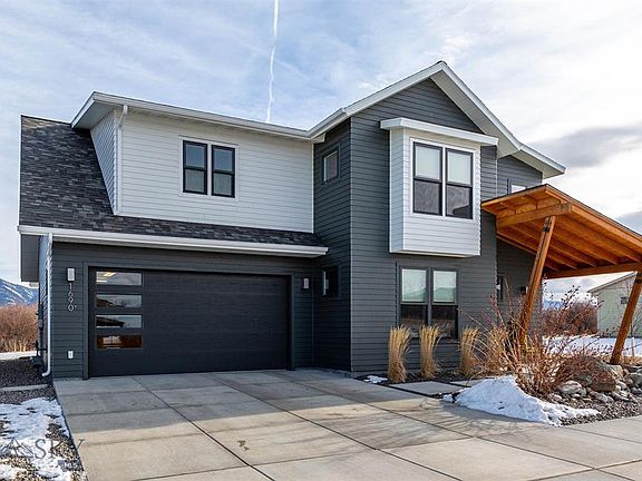 Get ready for captivating, Bridger Mountain views! This modern 4-bedroom home sits in the popular neighborhood of West Winds. Surrounded by multiple parks, this area is suited for close-minute outdoor activities and an abundance of fresh air. Landscaped to impress with clean exterior finishes, no detail was overlooked in the construction of this custom home. Private main floor master, gourmet kitchen, and an open living area lead out to a spacious covered patio, ready for warm summer gatherings or cozy winter bonfires. Head upstairs to welcome 3 bedrooms and a flexible space, perfect for an office or media area. The 3 car tandem garage is fitted with a 240-power port convenient for an electric car. Minutes from schools, the Post Office, shopping and the 19th interchange. This home yields access to the best of Bozeman!