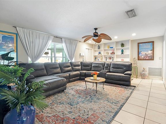 Situated in a sought-after 55+ community, this impeccably maintained home boasts an updated chef's kitchen, ideal for culinary enthusiasts, complete with extra cabinets, counter space, & a huge pantry not found in similar homes. This residence features an enclosed Florida Room, adaptable as a family room, TV room, dining area, or even an extra bedroom. The master suite includes a walk-in closet, while the second bedroom offers two large closets, ensuring ample storage. Impact windows & doors guarantee safety & energy efficiency. Relax and enjoy the Florida weather on the screened patio. The double-wide driveway is a rare feature in this neighborhood. Low maintenance fees cover clubhouse amenities, pool, lawn care, and exterior painting. Don't miss out on this fantastic opportunity!